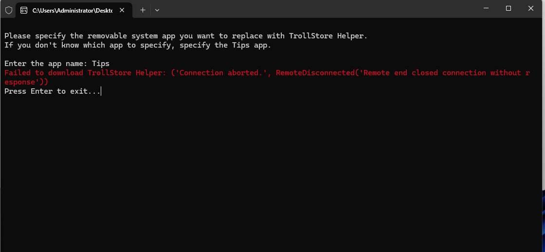 看到 Successfully install TrollStore!即巨魔商店安装完成。